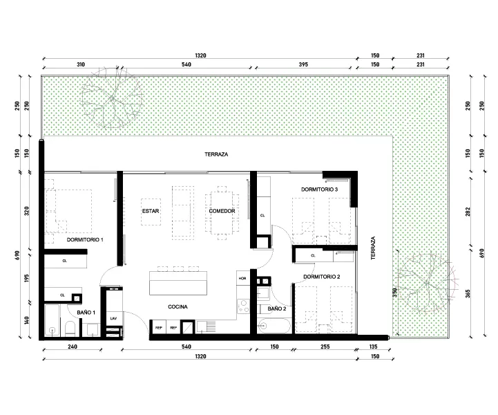 Tour 360° Depto. mariposa 2 dormitorios 2 baños